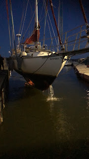 Keulapotkuri akkuinen ui metrin syvällä merivedessä. Muuten vene oli pysynyt kuivana. Soitin Trossi -merihinaispalveluun. Paikalle saapui pelastusalus Mikrolog. Avuksi saatiin myös Heini, suurempi rautalaiva, mikä osoitautui hyväksi päätökseksi. Sain myös yhteyden JoukoLindgren-telakan päivytykseen. Luvattiin ottaa vene ylös vielä saman lauantain iltayön aikaan. Todellista yrittäjähenkeä!